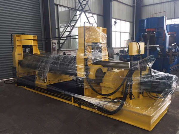 The 3-roller hydraulic plate rolling machine has 3 symmetrically-arranged rolls. Its upper roller is located at center of two lower rollers and is directly driven by dual hydraulic cylinders to perform vertical movement. The output gear mounted on the main speed reducer is used to mesh the gears on the 2 lower rolls for rotatory motion so as to provide torque for the plate. With the pressure exerted by the upper roller and the rotary motion of the lower rollers, the metal plate placed among the three working rollers will be bent continuously and finally come into a permanent plastic deformation. In this way we will get the plate with required shapes such as cylinder, taper cylinder or arc, etc. Disadvantage of this kind of hydraulic plate rolling machine is that the end of plate could not be bent in advance, but it can realize that when checking the roundness. With a motion detector and a digital meter for the upper roller, operators will be able to directly observe the position of the roller, helping to improve the working efficiency dramatically.